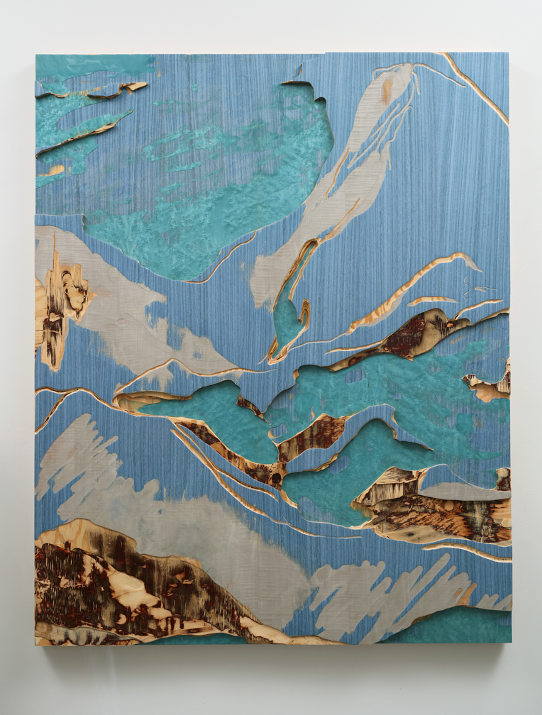 Beyond mountains, 2019 carved custom plywood of tinted veneers 56" x 45" / 142 x 114 cm