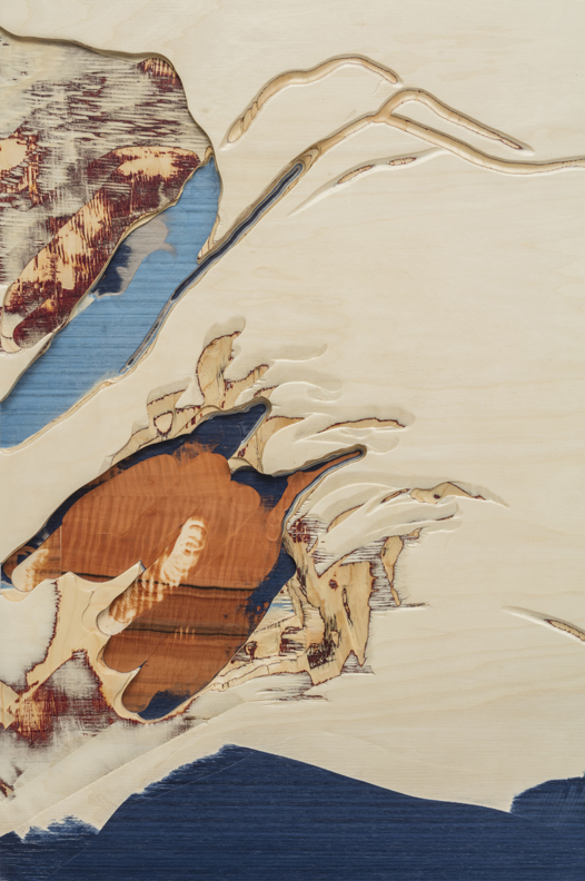 The River in the Tree I (detail), 2015 carved custom-made plywood of tinted & exotic veneers
