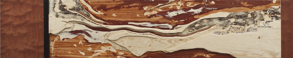 L'écho des éléments, 2013 carved custom-made plywood (spruce, tulipwood, bloodwood, bubinga & tinted veneers) 24" x 120" / 61 x 305 cm