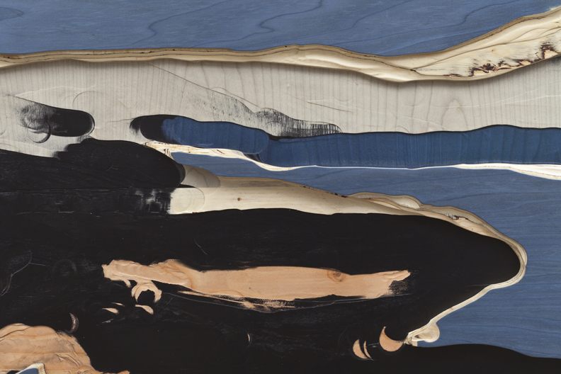 L'écho des éléments (detail), 2013 carved custom-made plywood (spruce, douglas-fir, bubinga & tinted veneers)