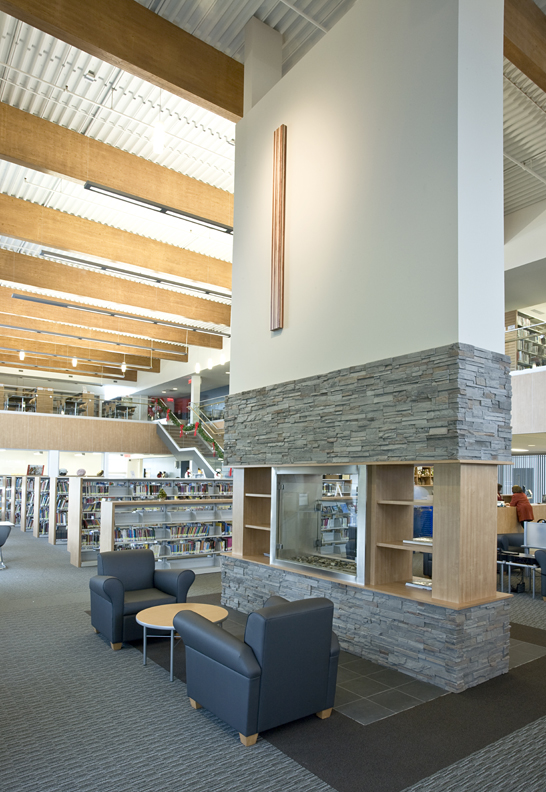 Le courant de la mémoire, 2009 tulipwood, maple, walnut & bloodwood 95” x 7” / 241 x 18 cm Bibliothèque Ville Sainte-Catherine, Quebec Leclerc architecte
