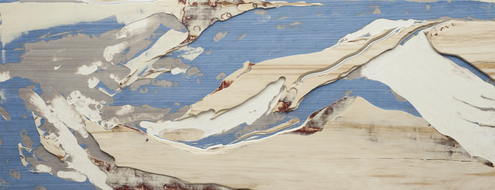 Himalayas, 2013 carved custom-made plywood of tinted veneers 30” x 78” / 76 x 198 cm