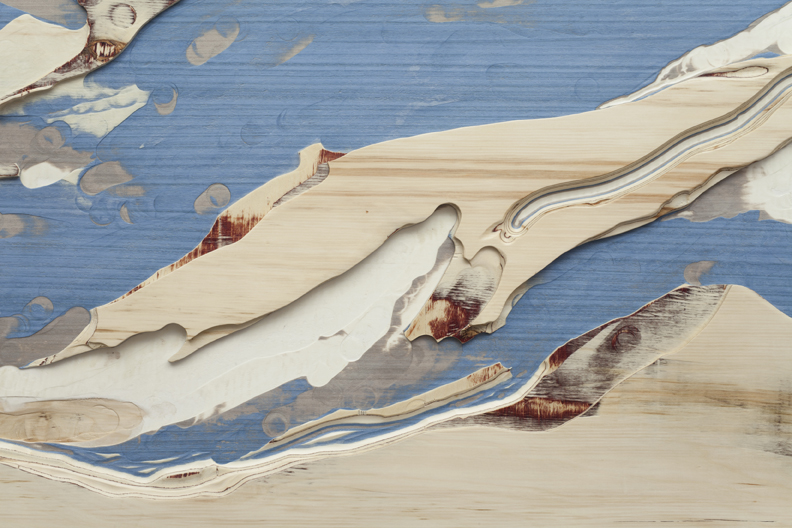 Himalayas (detail), 2013 carved custom-made plywood of tinted veneers