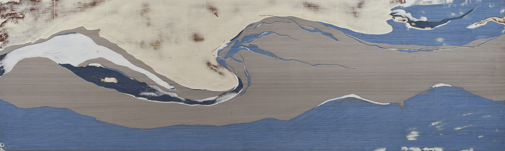 Les déferlantes, 2013 carved custom-made plywood of tinted veneers 30” x 78” / 76 x 198 cm