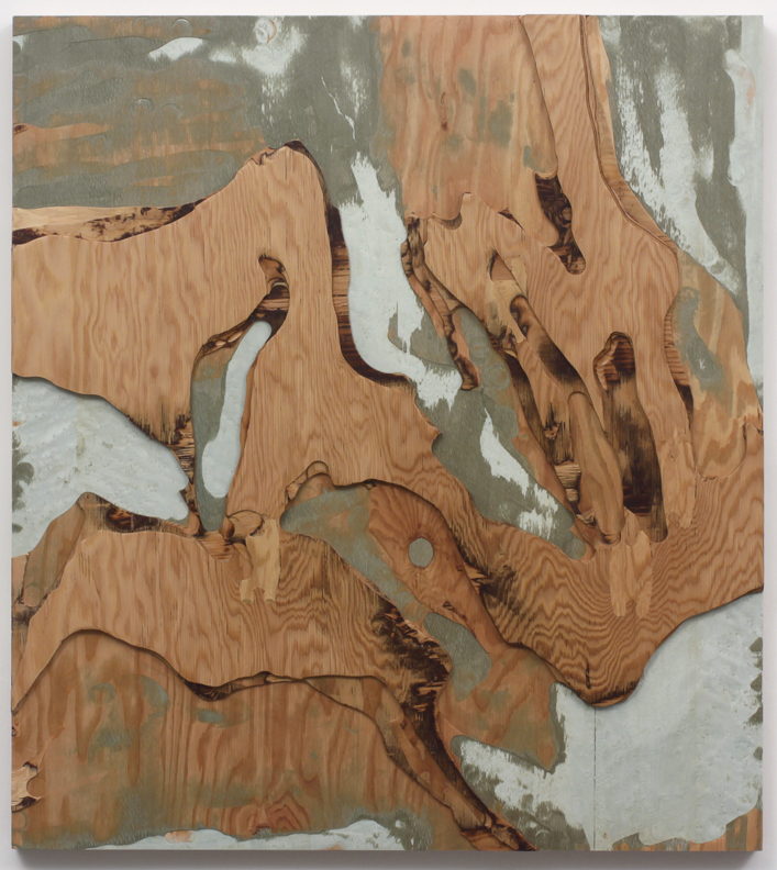 Terrestrial Fugue I, 2016 carved custom plywood of tinted & exotic veneers 40” x 36” / 102 x 91 cm