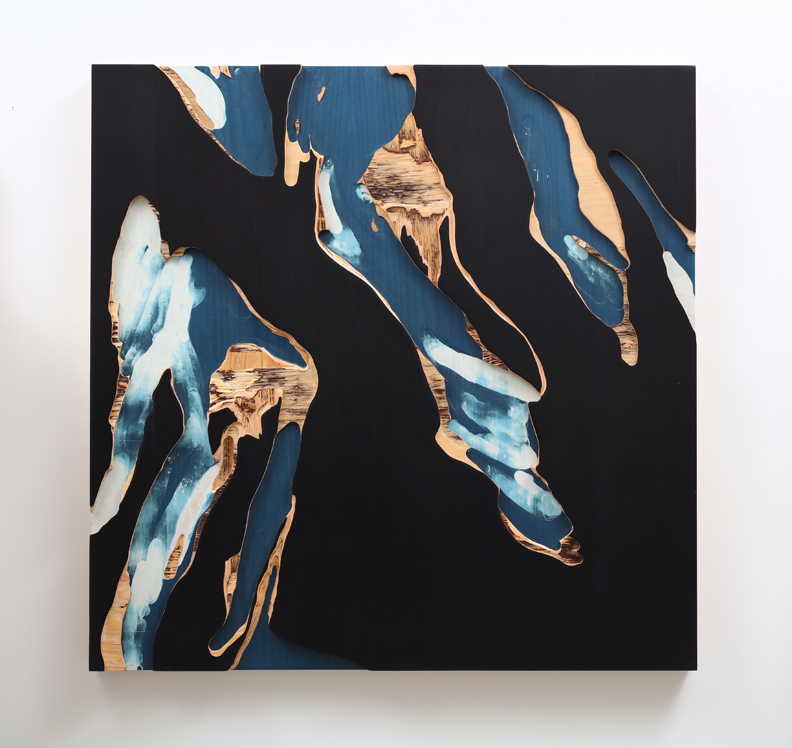 Sea passages, 2019 carved custom plywood of tinted veneers 42" x 42" / 107 x 107 cm