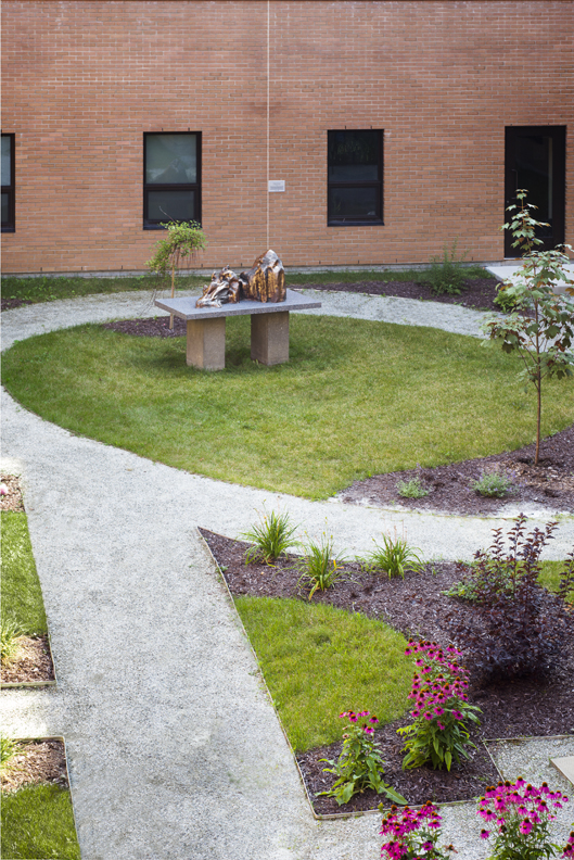Le temple des paroles, 2013 bronze, granite & cément Cour intérieure. Sentier et paysage dessiné par l'artiste, Antoine Maltais et Alexandre Masino.