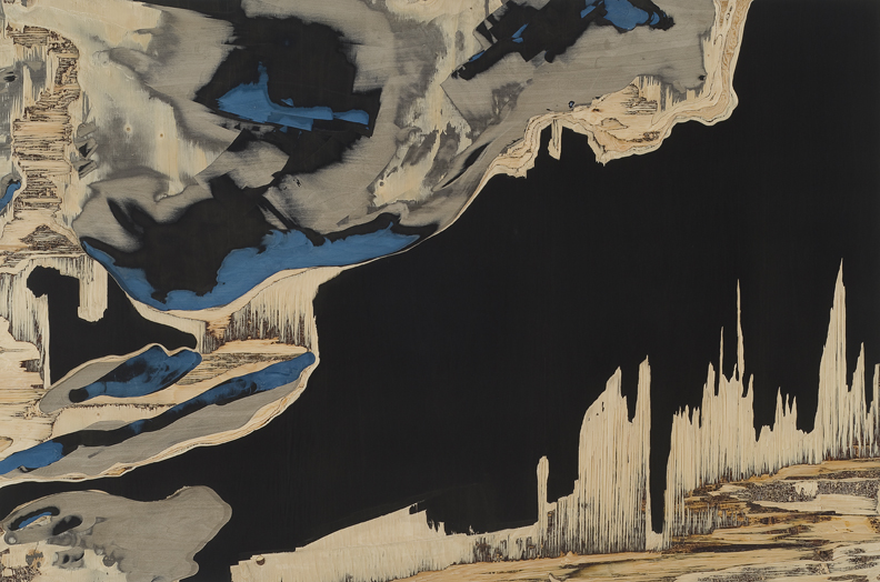 Arpenter le temps, 2012 bas-relief de contreplaqué de bois exotiques 32” x 48” / 81 x 122 cm