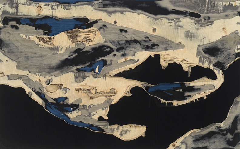 Déferler, 2011 bas-relief de contreplaqué de bois exotiques 30” x 48” / 76 x 122 cm