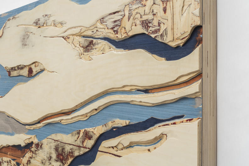 The River in the Tree I (detail), 2015 bas-relief de contreplaqué de placages exotique et teints