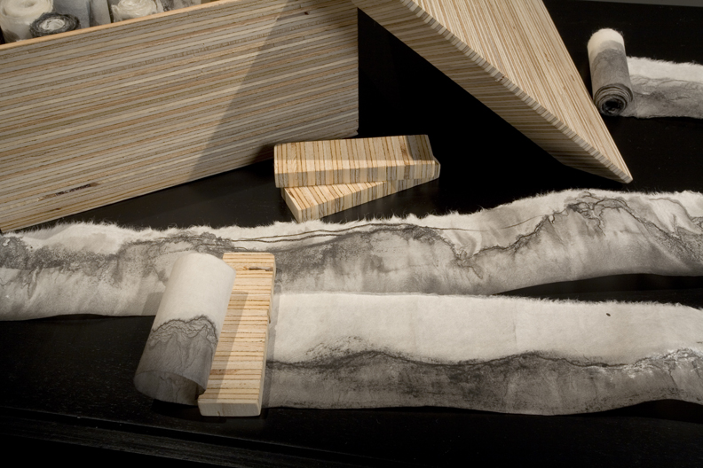 Mosaïque d’horizons (detail), 2005-2007 plywood box ink, graphite, charcoal & pastel on rice paper