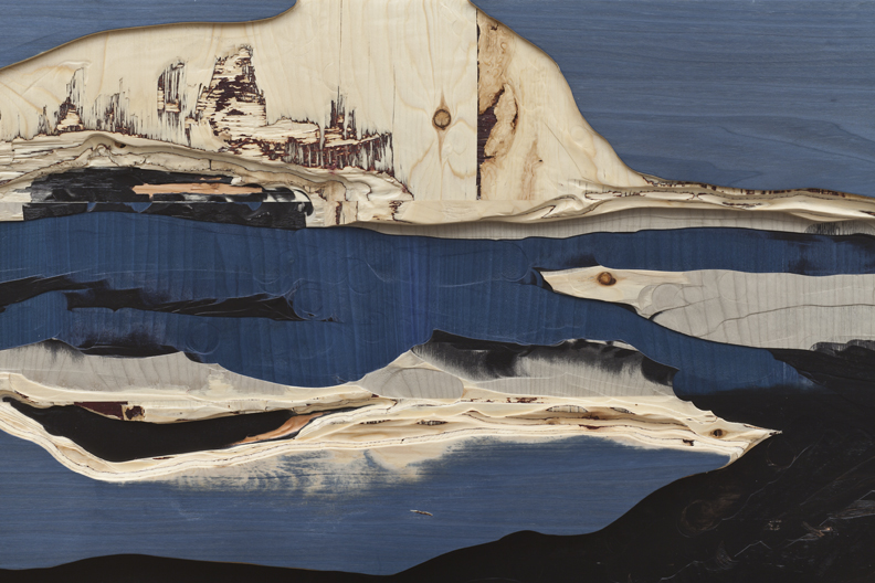 L'écho des éléments (detail), 2013 carved custom-made plywood (spruce, douglas-fir, bubinga & tinted veneers)