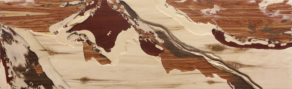 Hermitage, 2012 carved spruce, tulipwood, maple, walnut & bloodwood plywood 24” x 78” / 61 x 198 cm