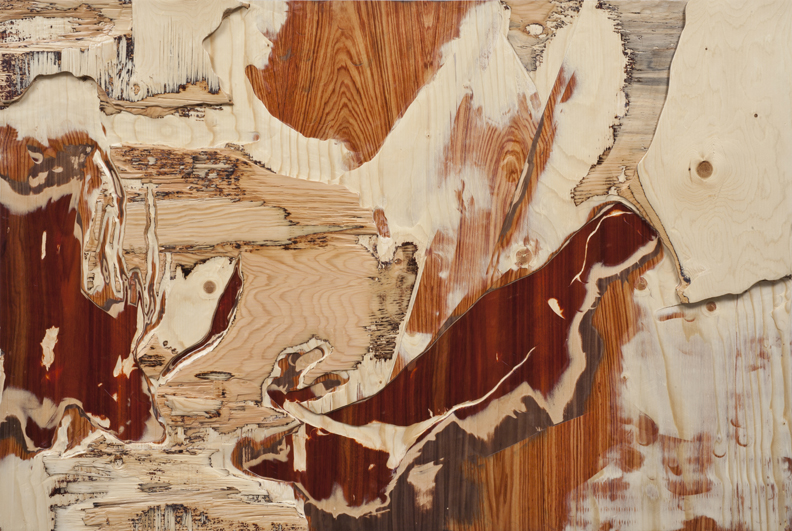 Au couchant, 2012 carved spruce, tulipwood, maple & bloodwood plywood 32” x 48” / 81 x 122 cm