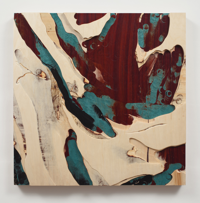 Koan III, 2015 carved custom-made plywood of tinted & exotic veneers 30” x 30” / 76 x 76 cm