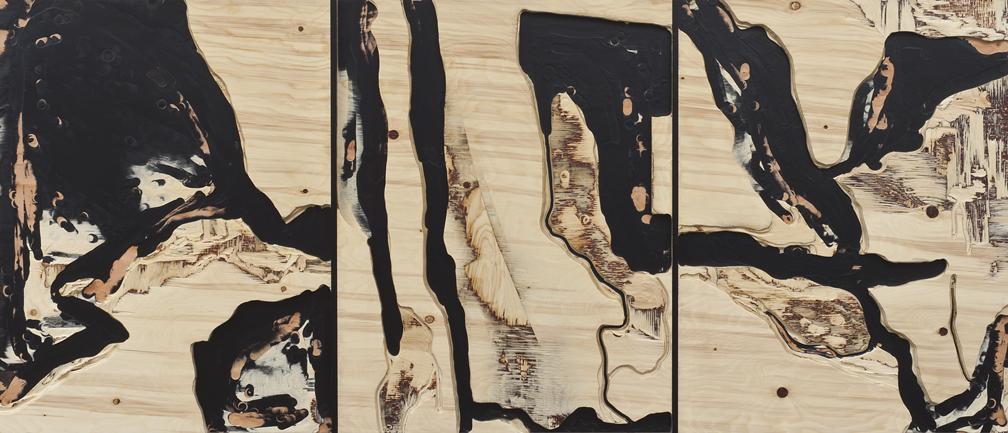 Miroir de Gaia, 2013 carved custom-made plywood of tinted veneer & ebony 36” x 84” / 91 x 213 cm