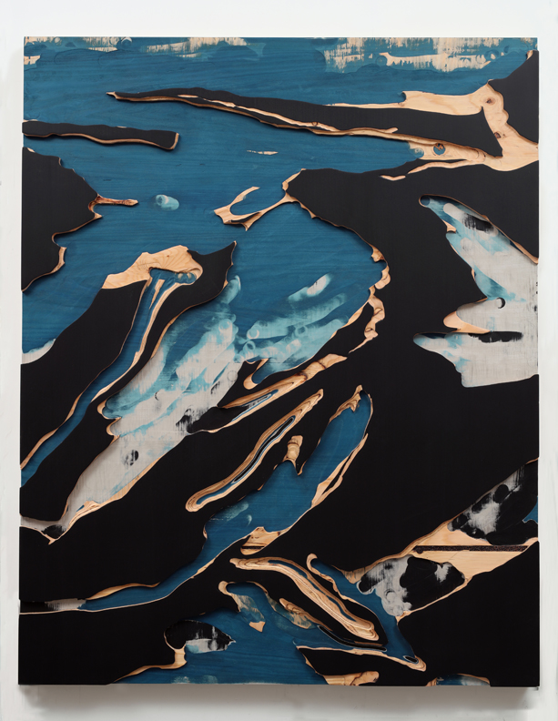 Telluric Forces, 2017 carved custom plywood of tinted veneers 60" x 48" / 152 x 122 cm