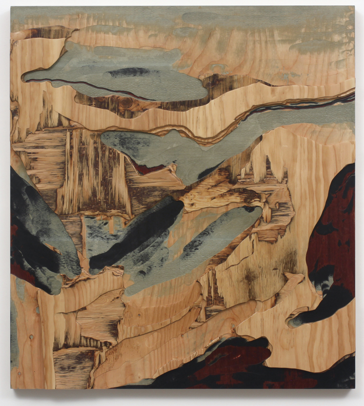 Terrestrial Fugue III, 2016 carved custom plywood of tinted & exotic veneers 40” x 36” / 102 x 91 cm