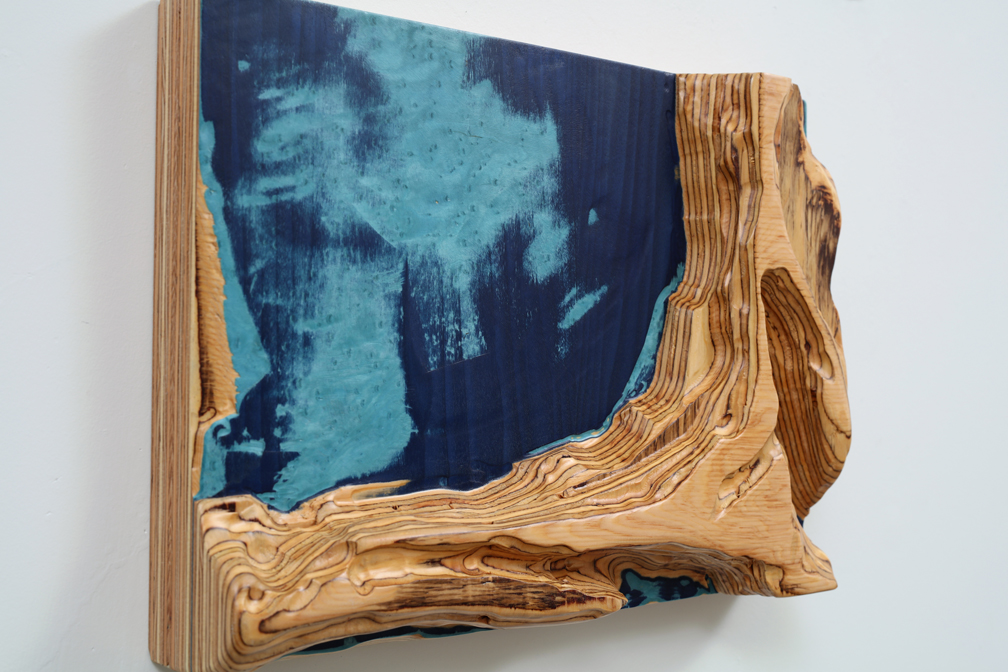 Icefields Parkway #14 (detail), 2018 carved custom plywood of tinted veneers 11.75” x 16.75” / 29.8 x 42.5 cm
