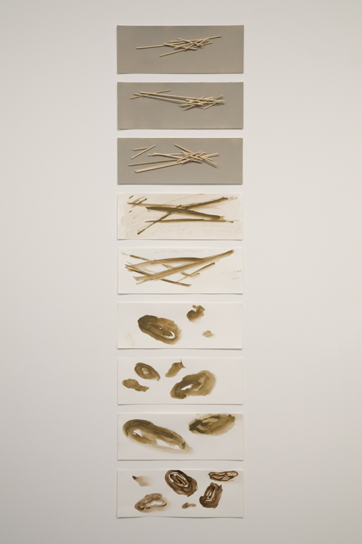 Sketches & collages (Vortex), 2006 aqua-dspersion & wood sticks on painted paper 5” x 13.75” / 13 x 35 cm The following collages and watercolours represent the different facets of my research method.