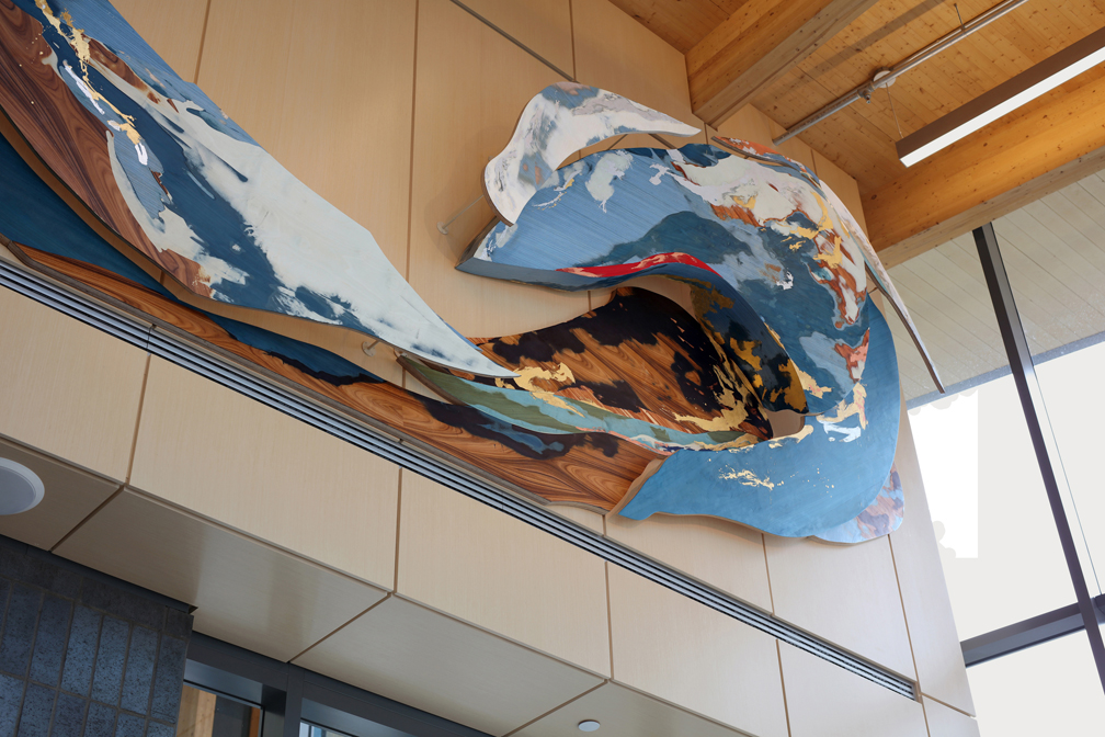 contreplaqué, placages teints et naturels avec feuille d'or, d'aluminium, de cuivre et acier inoxydable