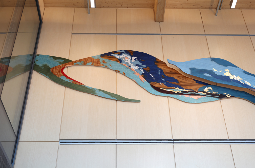 Affluents (détail), 2019 contreplaqué, placages teints et naturels avec feuille d'or, d'aluminium, de cuivre et acier inoxydable